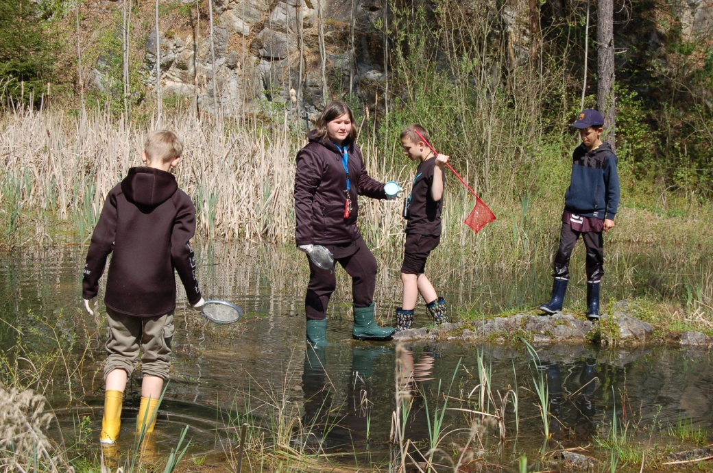 Společně prozkoumali několik typů mokřadů. V rybníce Kačák objevili zástupce ryb - lína obecného a invazní střevličky východní. Protože se v rybnících udržuje přiměřená rybí obsádka, mají v litorálech rybníků prostor k životu i kuňky obecné. V tůních v bývalém vápencovém lomu si žáci sami vyzkoušeli průzkum vodního hmyzu pomocí cedníku. Již s odborníky se pak seznámili s ohroženými obojživelníky naší fauny – s čolky obecnými. Akce se uskutečnila v rámci celoročního programu Domu přírody Blaníku.