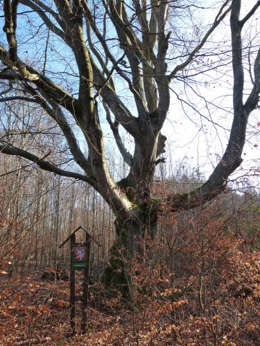 Teslínský/košatý/hraniční buk lesní. S obvodem 606 centimetrů a stářím cca 300 let je největším bukem ve Středočeském kraji a zřejmě posledním hraničním stromem v Brdech. Mohutný dvoják se na přelomu století rozlomil v tlakové vidlici. Přestože byl v roce 2011 arboristicky ošetřen, jeho postupnému zániku nezabráníme. Na druhou stranu můžeme přímo pozorovat osidlování stromu dřevokaznými houbami a dalšími organizmy vázanými na odumírající dřevo. Původní podobu teslínského buku můžeme dodnes obdivovat na grafice pana Jana Čáky, publikované v jeho knize Brdské toulání.