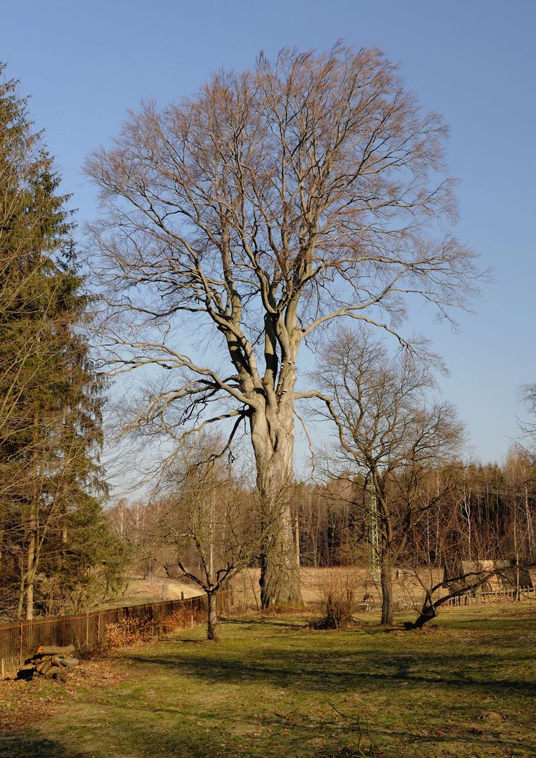 | Impozantní buk s malebnou korunou roste na rozhraní lesa a pastviny nedaleko restaurace Obří sud | ||||||