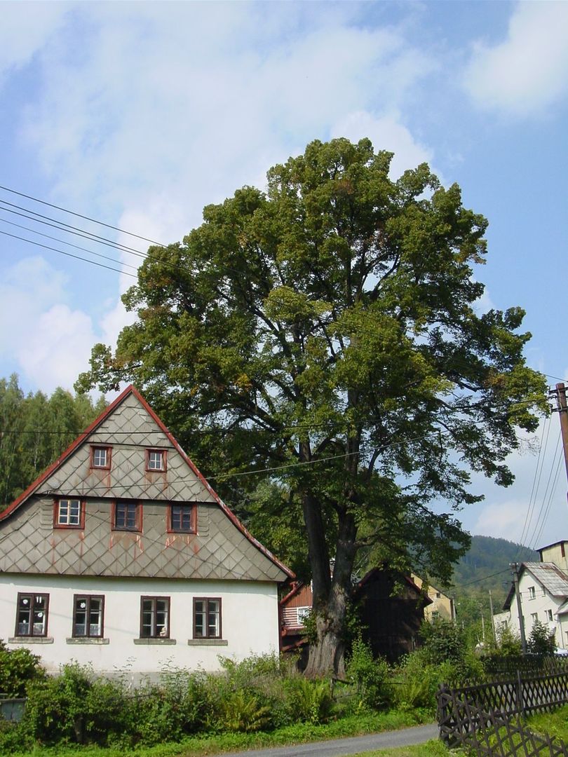| Nejmohutnější dub Jizerských hor s kulovitou korunou, roste u domu č.p. 145 u cesty na Příchovice | ||||||