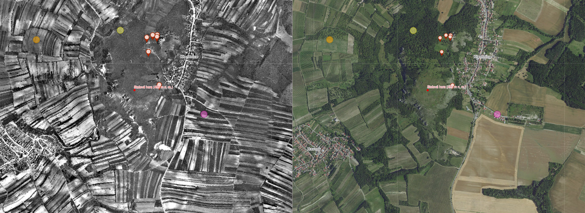 Jak se ve 20. století změnila krajina CHKO Pálava? To ukazuje mapová aplikace s historickými leteckými snímky z roku 1938 a současným ortofotem. Doplňují je srovnávací fotografie historických pohlednic.